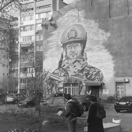 The series captures fragments of everyday life in Kyiv and Kharkiv — two cities shaped by war, endurance, and the quiet persistence of normality. Between damaged facades and Soviet-era housing blocks, children play at war, reenacting what surrounds them. The images oscillate between stark architectural observation and fleeting street impressions.